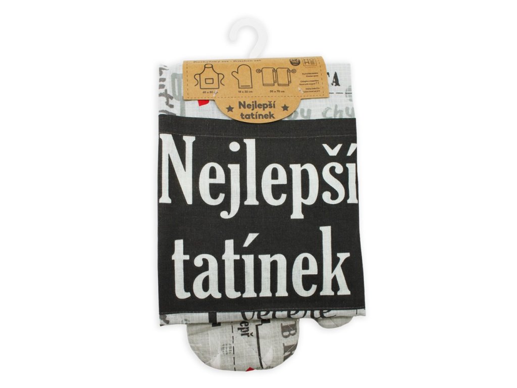 HOME ELEMENTS Set Nejlepší tatínek, zástěra, chňapka s magnetem, dvě utěrky